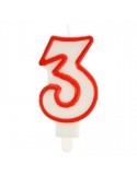 Świeczka w kolorze białym, z czerwonym obramowaniem.