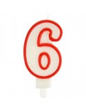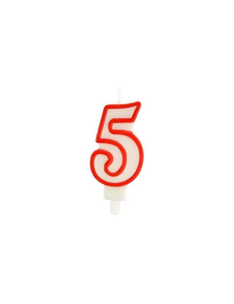 Świeczka w kolorze białym, z czerwonym obramowaniem.