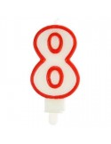 Świeczka w kolorze białym, z czerwonym obramowaniem.