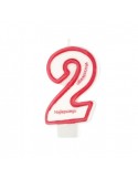 Biała świeczka z czerwoną obwódką z napisem Wszystkiego Najlepszego