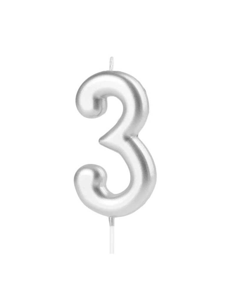 Świeczka urodzinowa cyfra 3 420193 srebna 7 cm urodziny przyjęcia