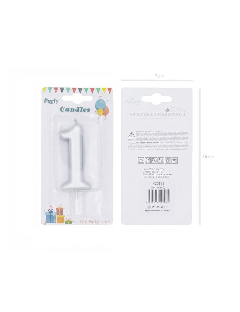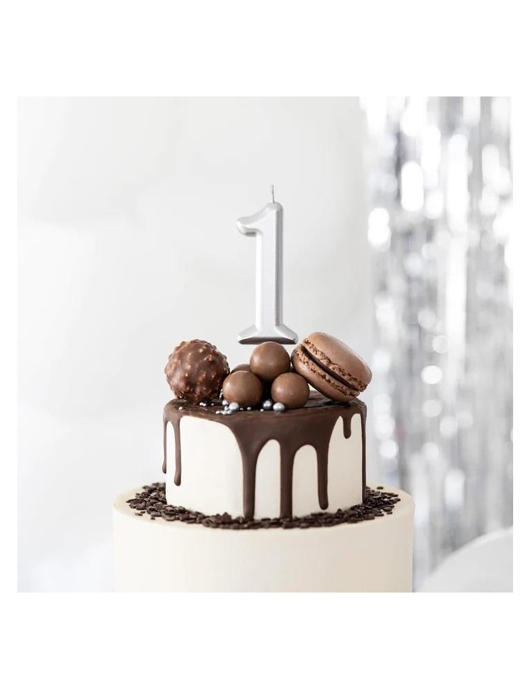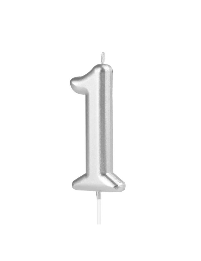Świeczka urodzinowa cyfra 1 420191 srebna 7 cm urodziny przyjęcia