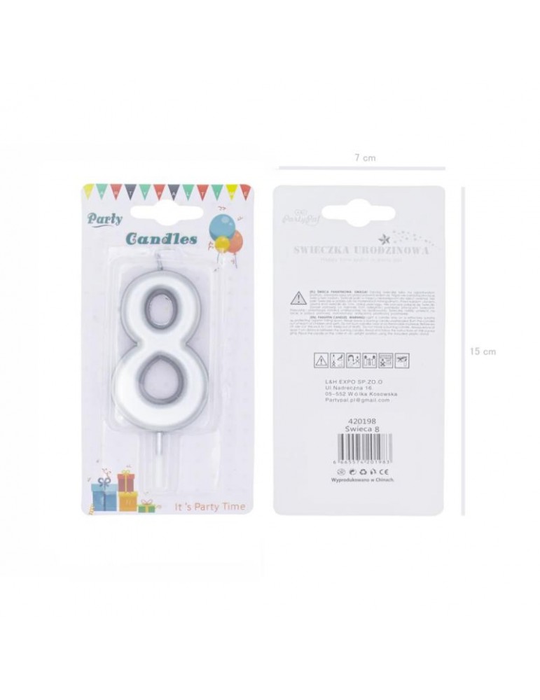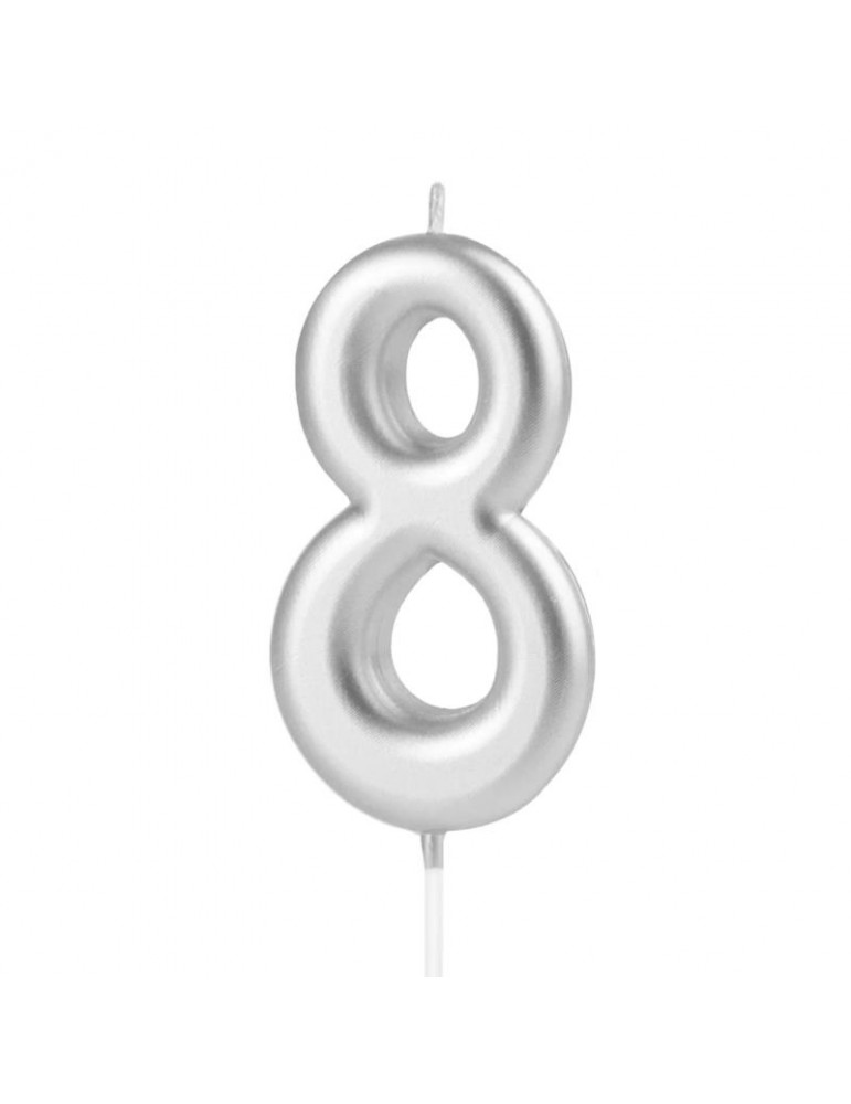 Świeczka urodzinowa cyfra 8 420198 srebna 7 cm urodziny przyjęcia