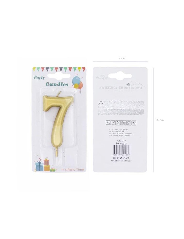 Świeczka urodzinowa cyfra 7 złota 420187 7 cm urodziny przyjęcia