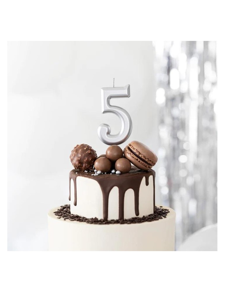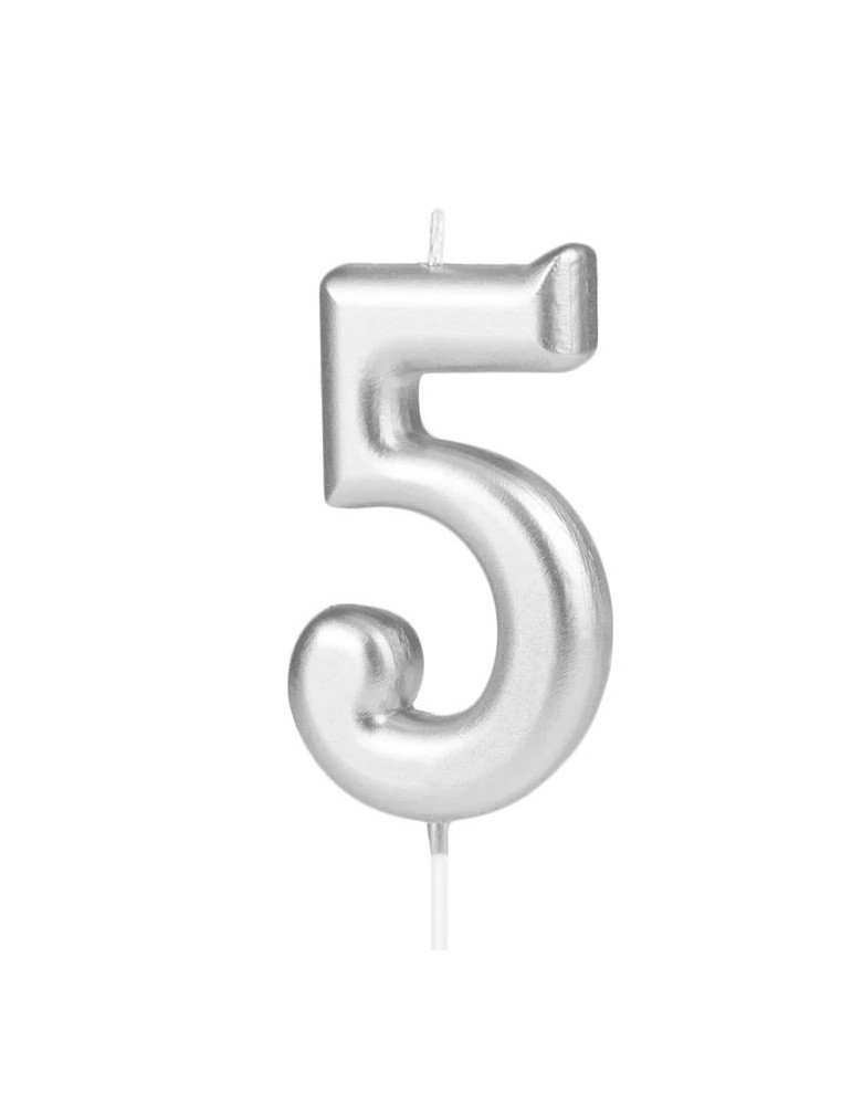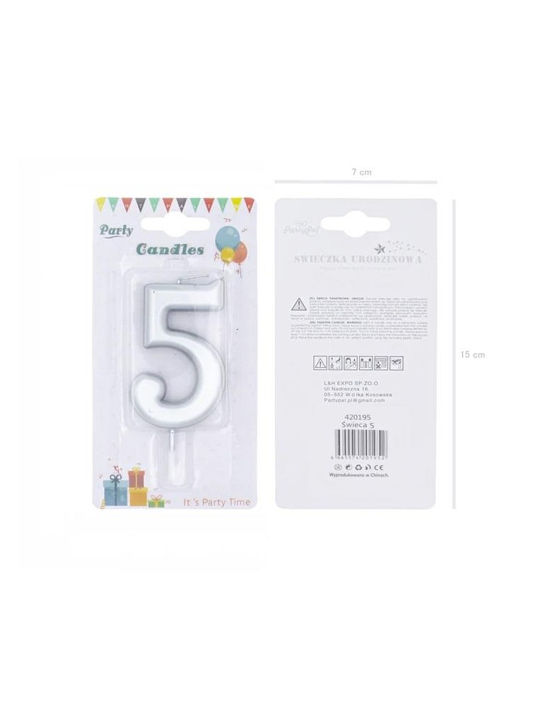 Świeczka urodzinowa cyfra 5 420195 srebna 7 cm urodziny przyjęcia