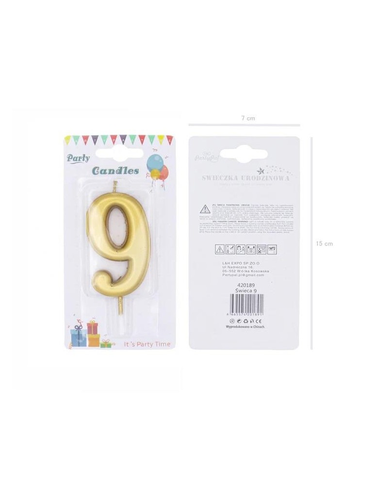 Świeczka urodzinowa cyfra 9 złota 420189 7 cm urodziny przyjęcia