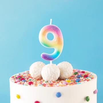 Świeczka cyfra 9 tęczowa 420306 Urodziny Rocznice cyferka