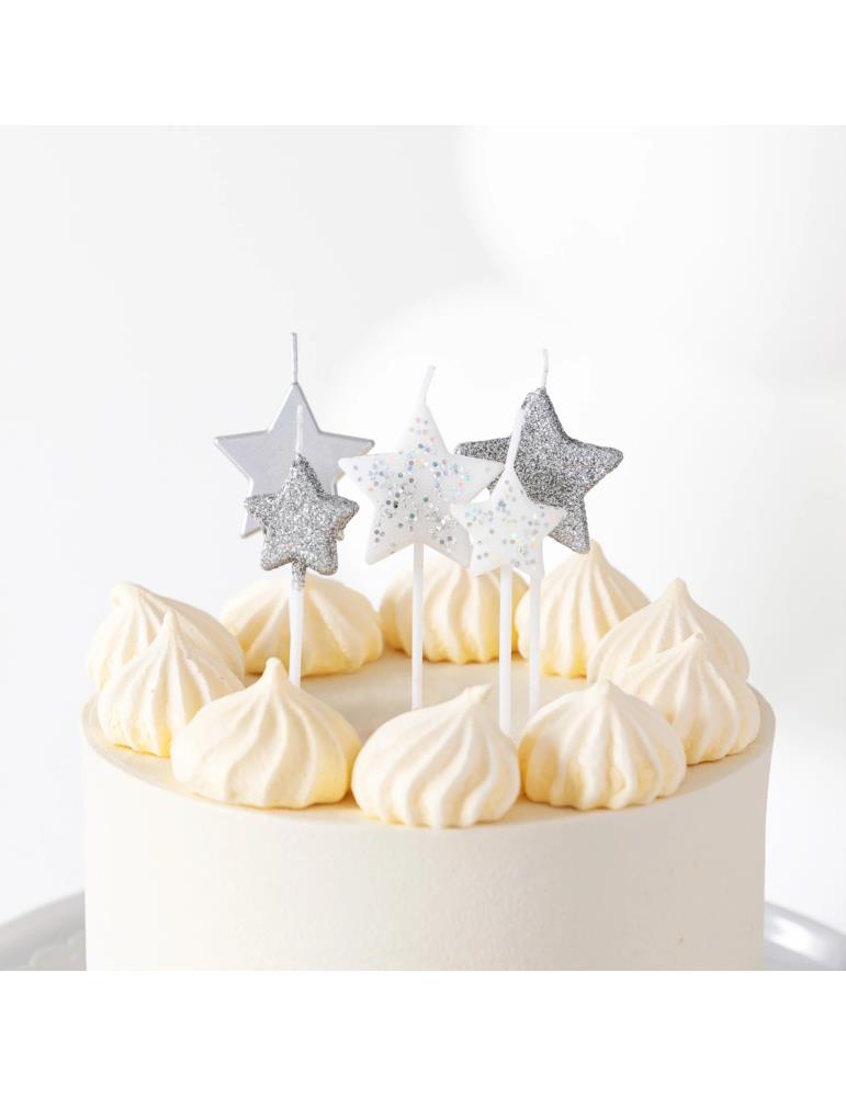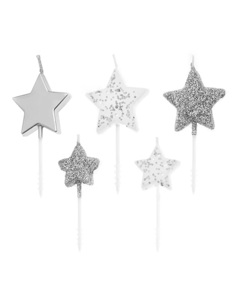 Świeczki gwiazdki srebne 420161 urodzinowe 5 sztuk