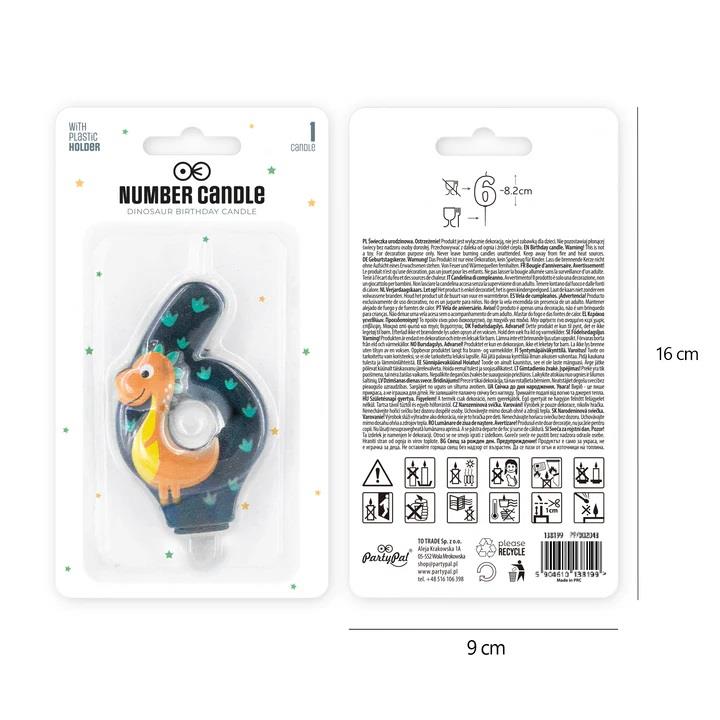 Świeczka cyfra 6 Dinozaura 138168 Urodzinowa na tort cyferka