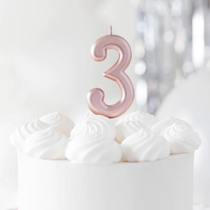 Świeczka urodzinowa Cyfra 3 Różowe złoto