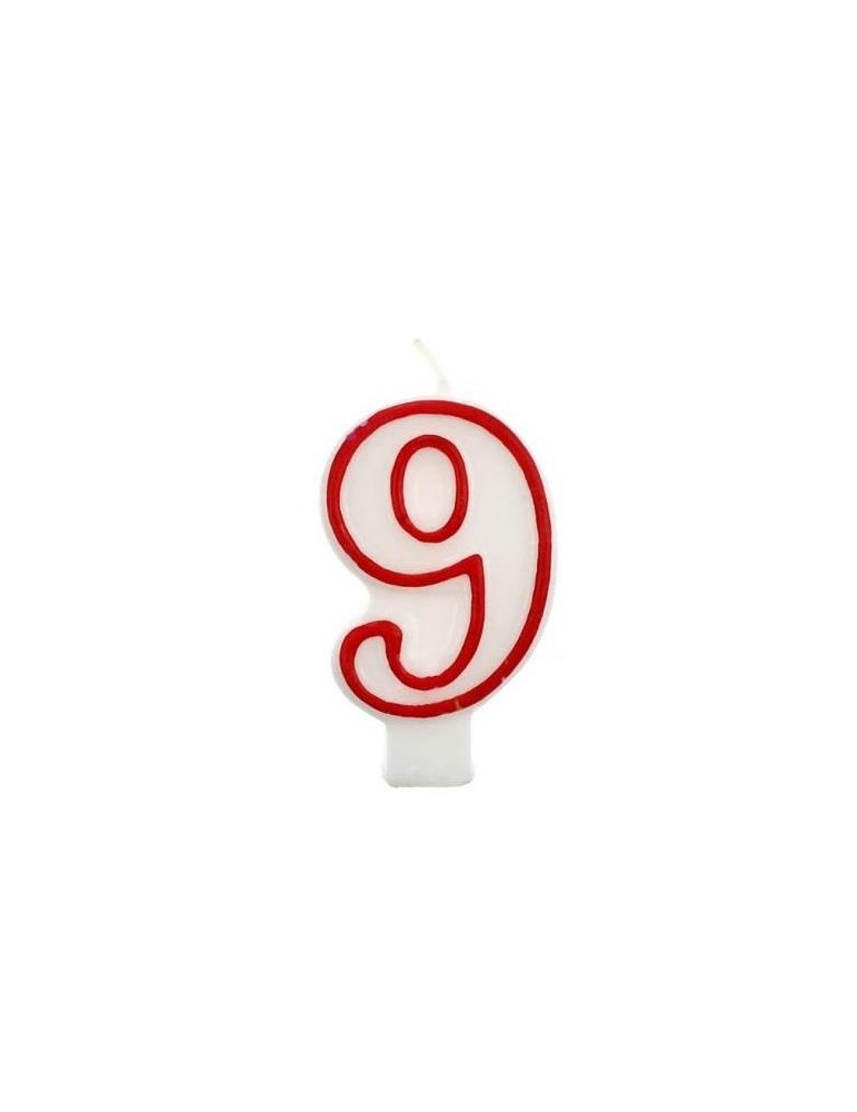 Świeczka w kolorze białym, z czerwonym obramowaniem.
