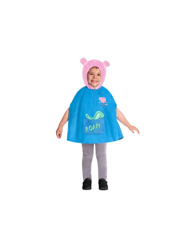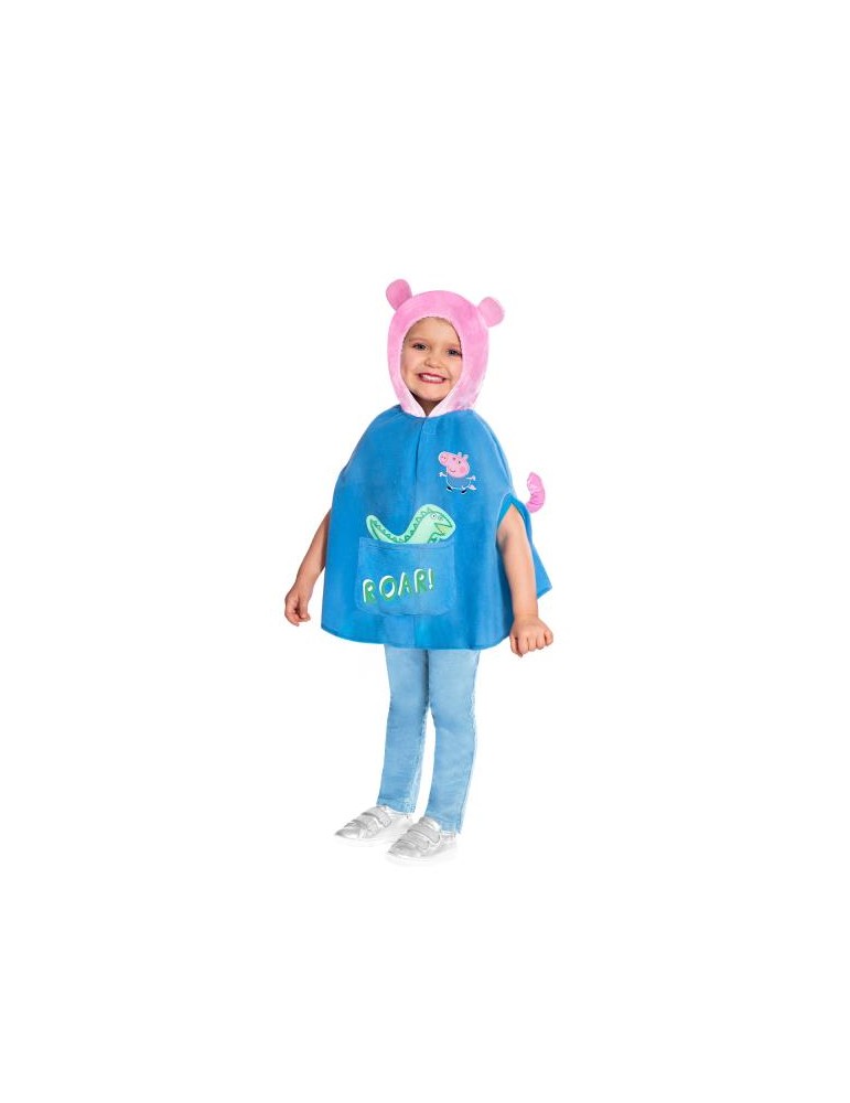 Wyposażony w niebieską pelerynę z wizerunkiem George`a, kieszeń z napisem „ryk” i uroczy różowy kaptur