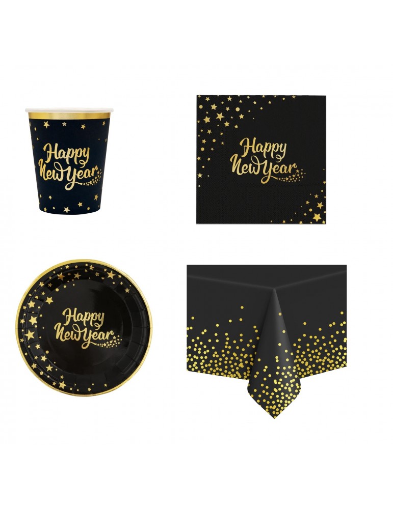 Zestaw Sylwestrowy Happy New Year Talerzyki Serwetki Kubeczki Obrus 23el MK547