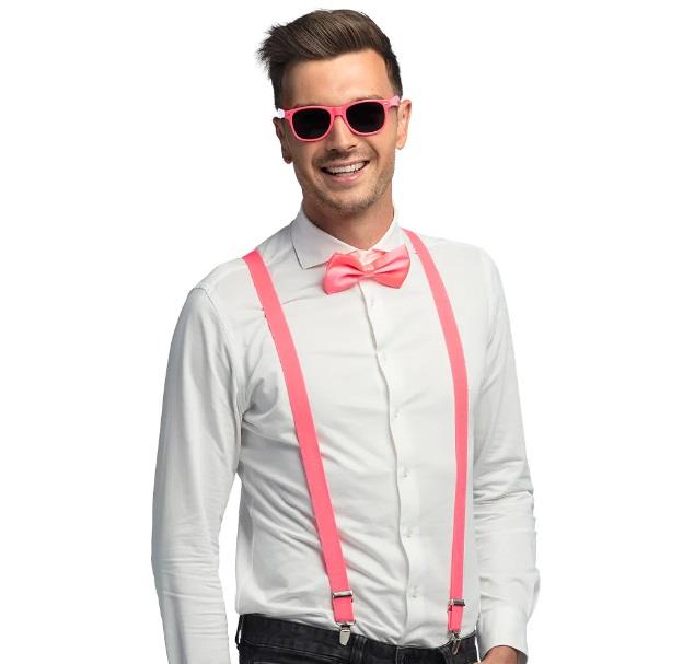 Zestaw Neonowy Różowy lata 80-te 14051 szelki okulary mucha