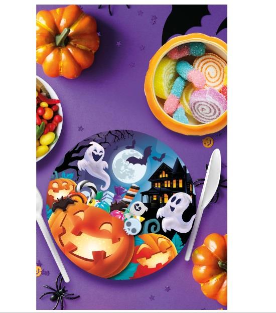 Talerzyki Wesołe Dynie Halloween 24767BZ 6szt 23cm Duszki Nietoperze Andrzejki
