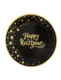 Talerzyk papierowy Happy New Year czarny średnica 7cali- 15cm