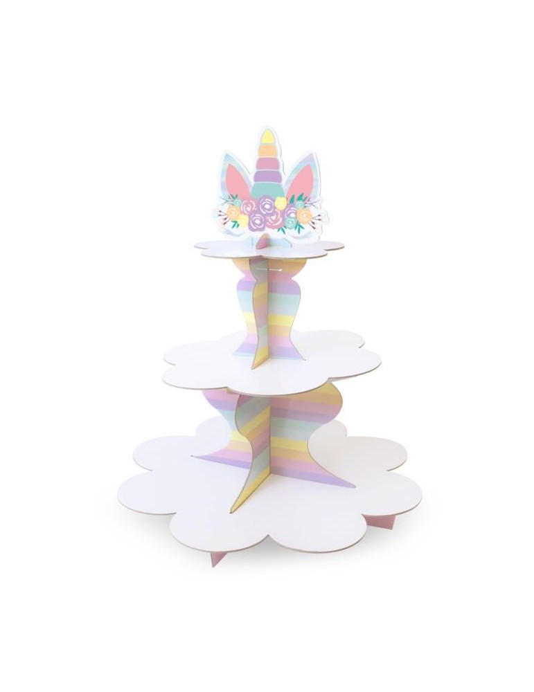 Trzypoziomowa patera wykonana z papieru ( kartonu ) na babeczki, ciasto czy owoce.