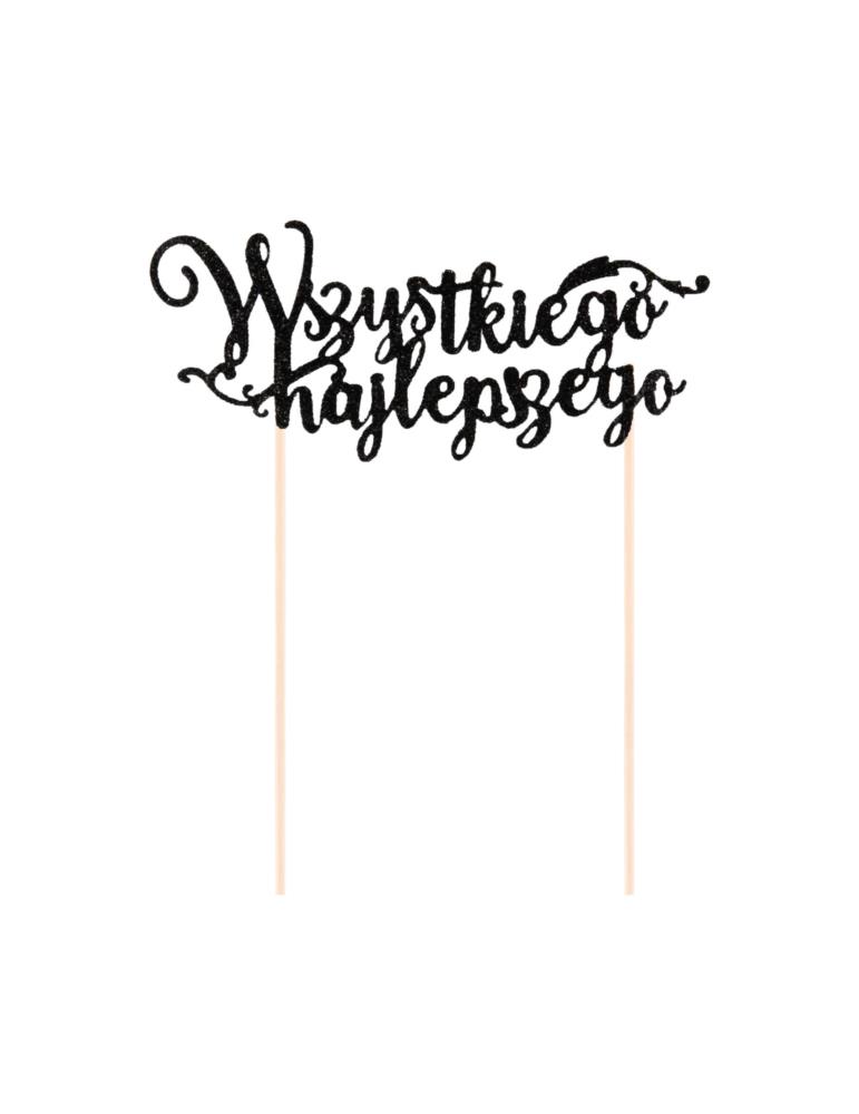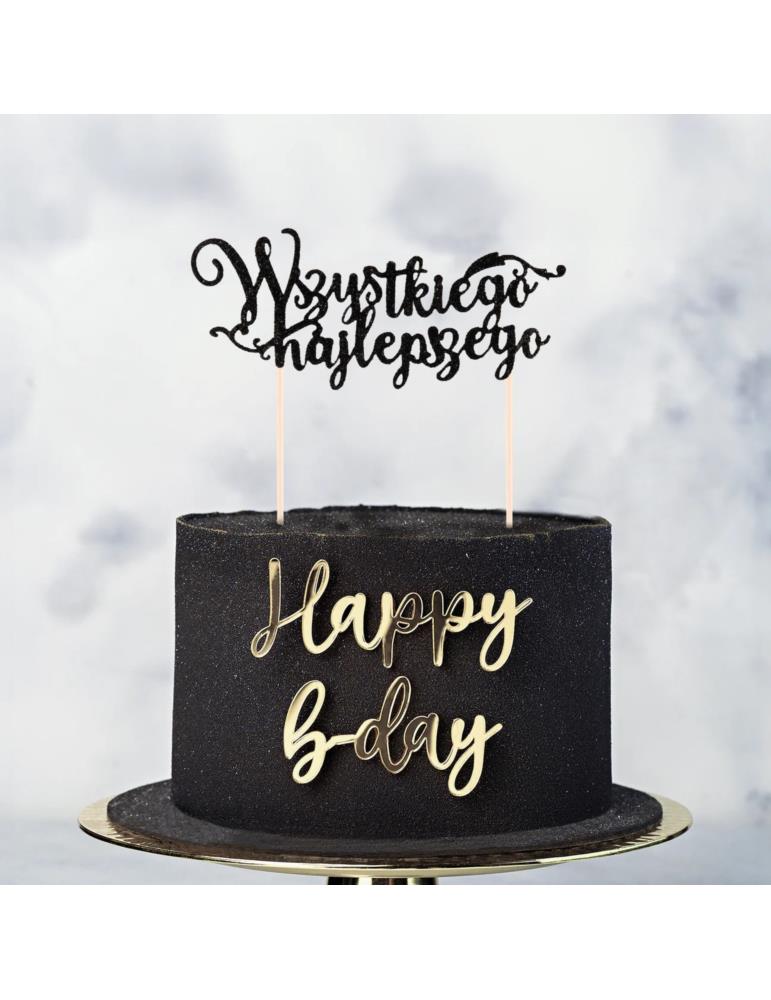 Topper na tort brokatowy czarny 144626 napis Wszystkiego Najlepszego