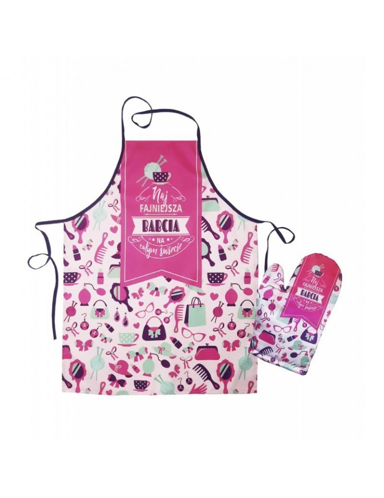 Zestaw Najfajniejsza Babcia ZES16BZ Fartuch + rękawica kuchenna Dzień Babci i Dzień Dziadka