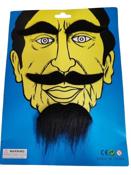 Zestaw sztuczne Wąsy broda brwi w kolorze czarnym, mocowane na taśmę.