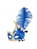Maska Wenecka Czarno-złota 12065 z piórkiem na oczy sylwestra