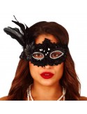 Czarne pióro umieszczone na masce dodaje jej wyrafinowania, tworząc efektowny akcent i przyciągając wzrok.