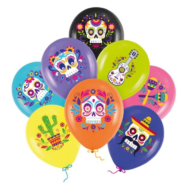 Balony Meksykańskie Halloween 167977 lateksowe 8szt Día de Muertos