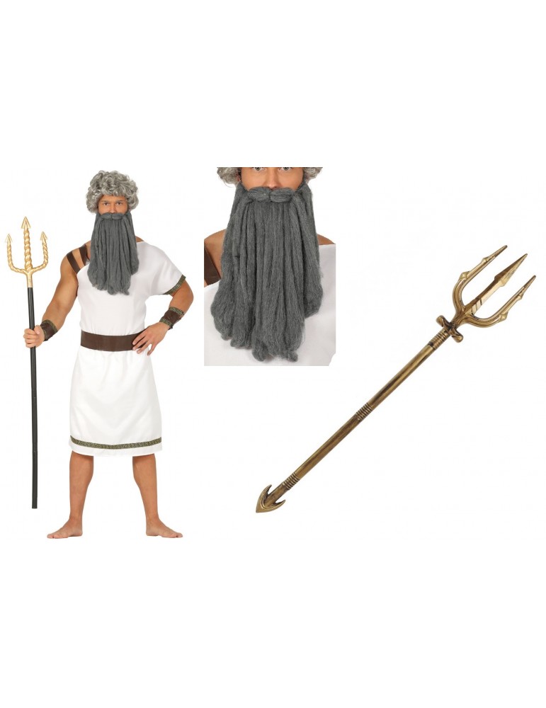 Zestaw Strój Neptun Zeus Posejdon M Trójząb Broda 3el MK258