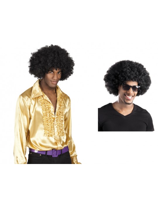 Zestaw Disco Koszula Złota XL plus Peruka Afro Czarna 2el MK332