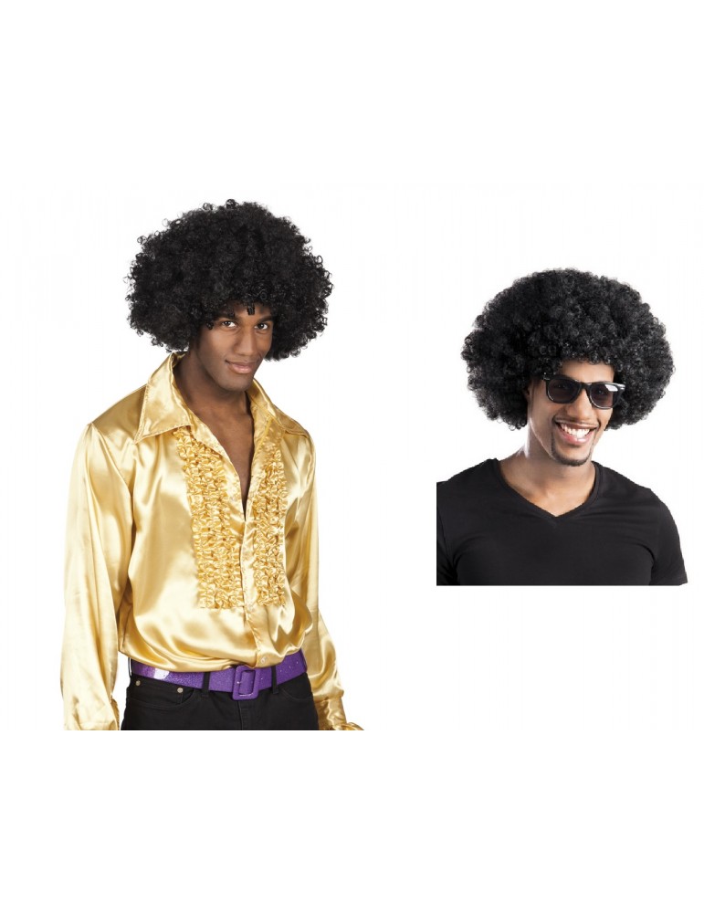 Zestaw Disco Koszula Złota XXL plus Peruka Afro Czarna 2el MK333