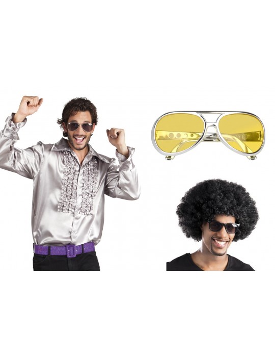 Zestaw Disco Koszula Srebrna L Peruka Afro Czarna Okulary Srebrne 3el MK340