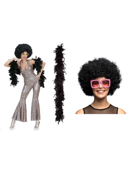 Zestaw Strój Disco Kombinezon S/M plus Peruka Afro Boa 3el MK373