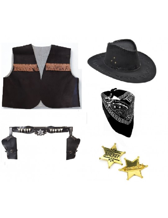Zestaw Strój Kowboja Kamizelka Szeryfa Kapelusz Bandanka Kabury Gwiazda 5el dla dorosłych MK609