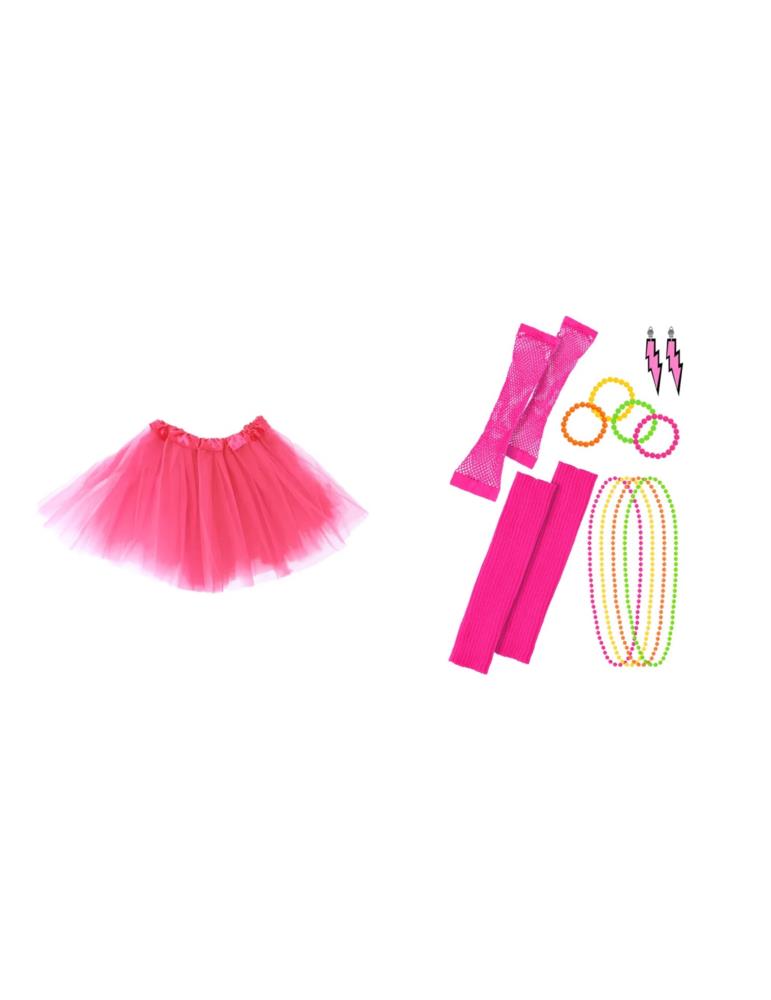 Zestaw Strój Disco lata 80 6el ZES656 TuTu Różowa 40cm Rękawiczki Opaska Kolczyki Bransoletki Korale