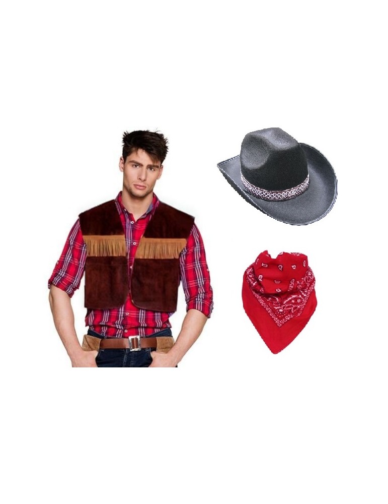 Zestaw Strój Kowboja Kamizelka Szeryfa Kapelusz Bandanka dla dorosłych 3el MK769