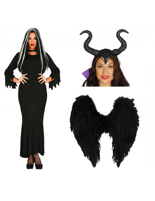 Zestaw Strój Diabolina Maleficent Sukienka L Opaska Skrzydła 3el MK893