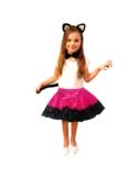 Strój kotka dla dziewczynki ze spódniczką, to ładny, prosty i efektowny strój pasujący każdej dziewczynce