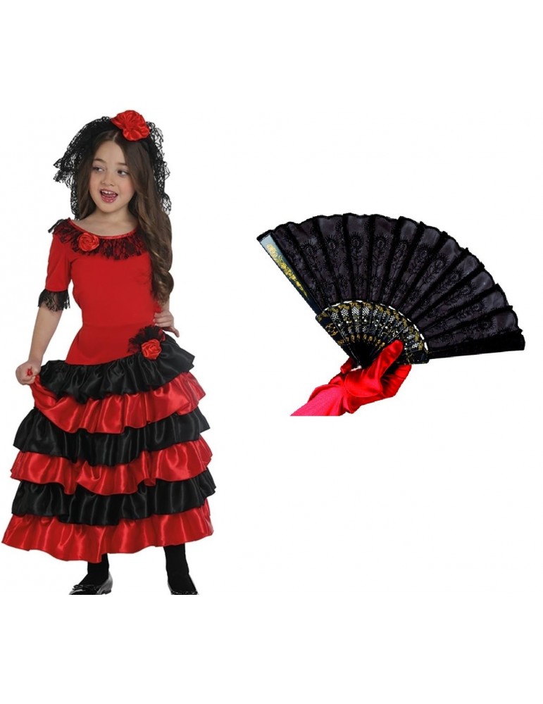 Zestaw Strój Hiszpanka 146/152 plus Wachlarz Czarny 2el MK275