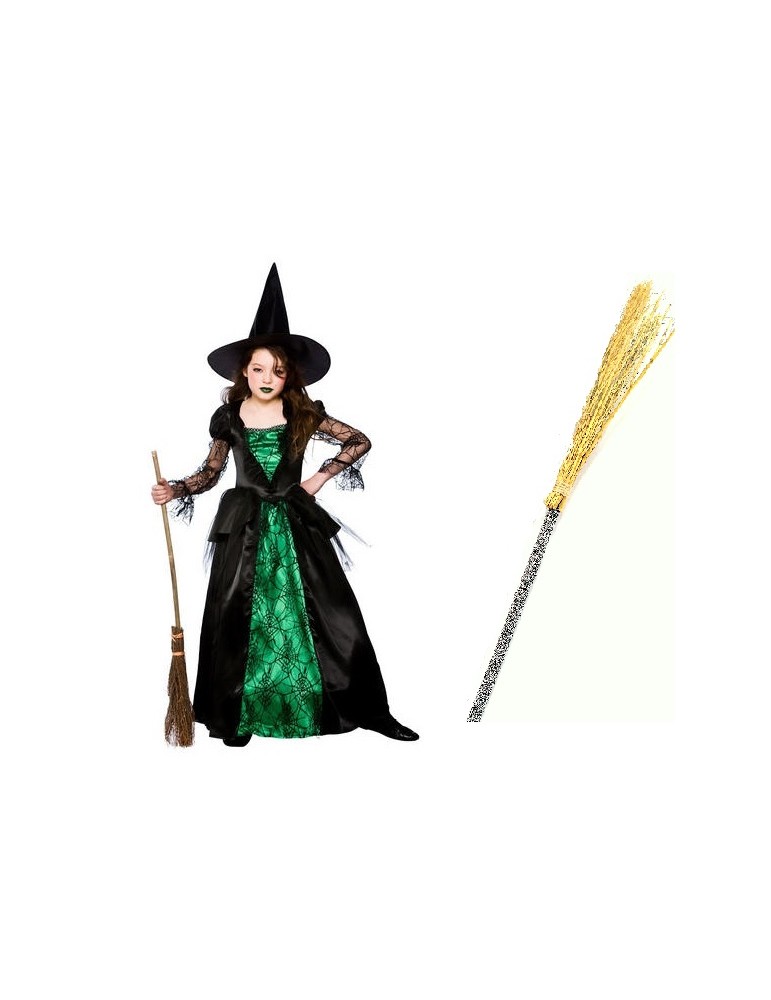 Zestaw Strój Czarownica 146/152 plus Miotła Srebrna 2el MK392