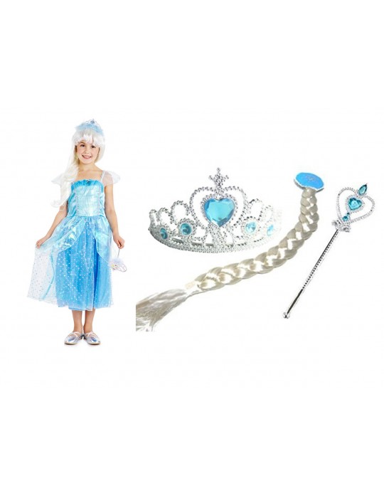 Zestaw Strój Księżniczki Niebieskiej 110/116 Diadem Różdżka Warkocz 4el MK590