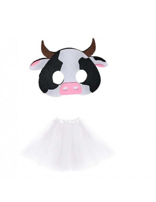 Zestaw Strój Krowa TuTu Biała 40cm Maska Pianka 2el MK625