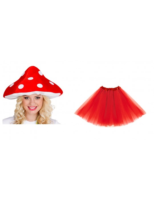 Zestaw Strój Muchomorka Muchomora Grzyba TuTu Czerwone 40cm Czapka 2el MK633