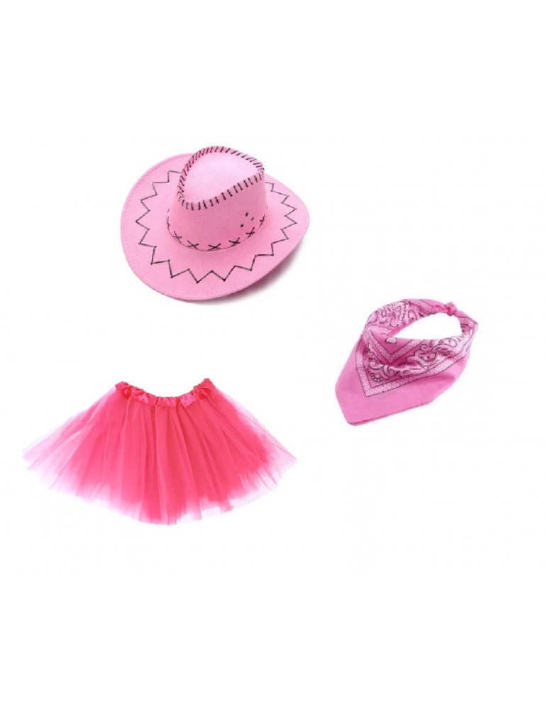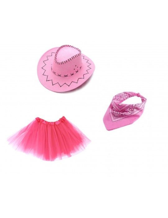 Zestaw Strój Kowbojki TuTu Różowa 40cm Kapelusz Bandanka 3el MK652