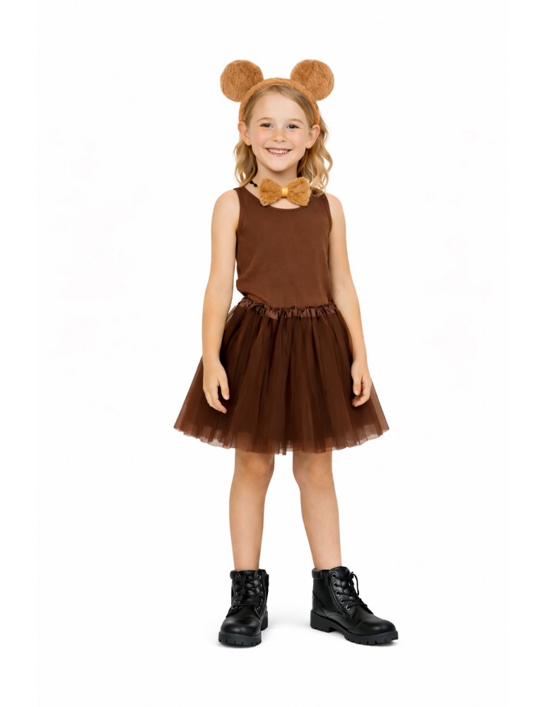 Zestaw Strój Misia Niedźwiadka TuTu 40cm Opaska Ogon Mucha 4el MK676