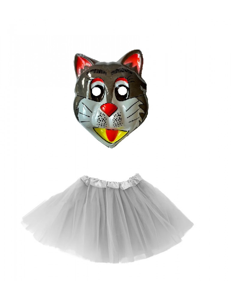 Zestaw Strój Kotka TuTu szara 30cm Maska PVC 2el MK828