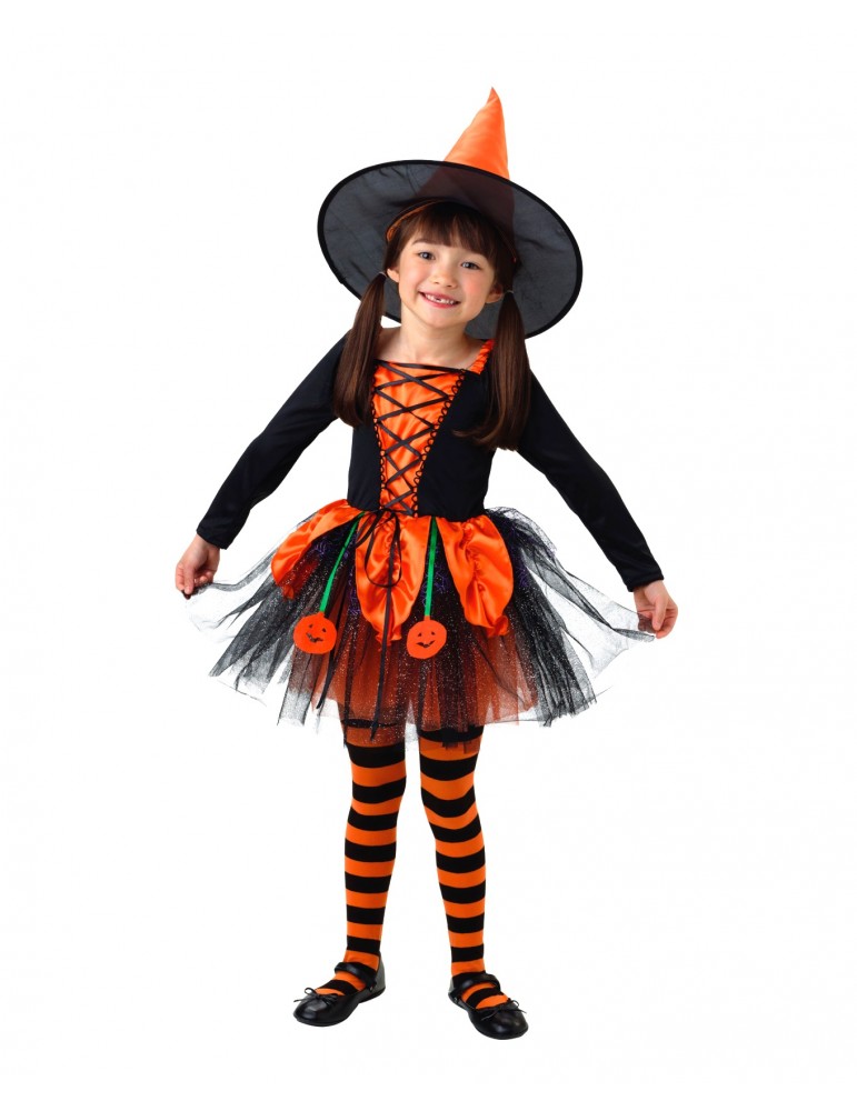 Zestaw Strój Czarownica Dynia 98/104 Rajstopy w Paski 3-6 lat 2el MK883