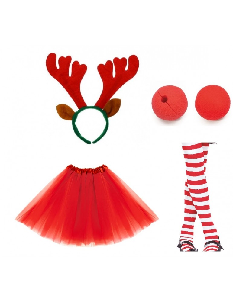 Super Rogi renifera w kolorze czerwonym na zielonej opasce z uszkami.