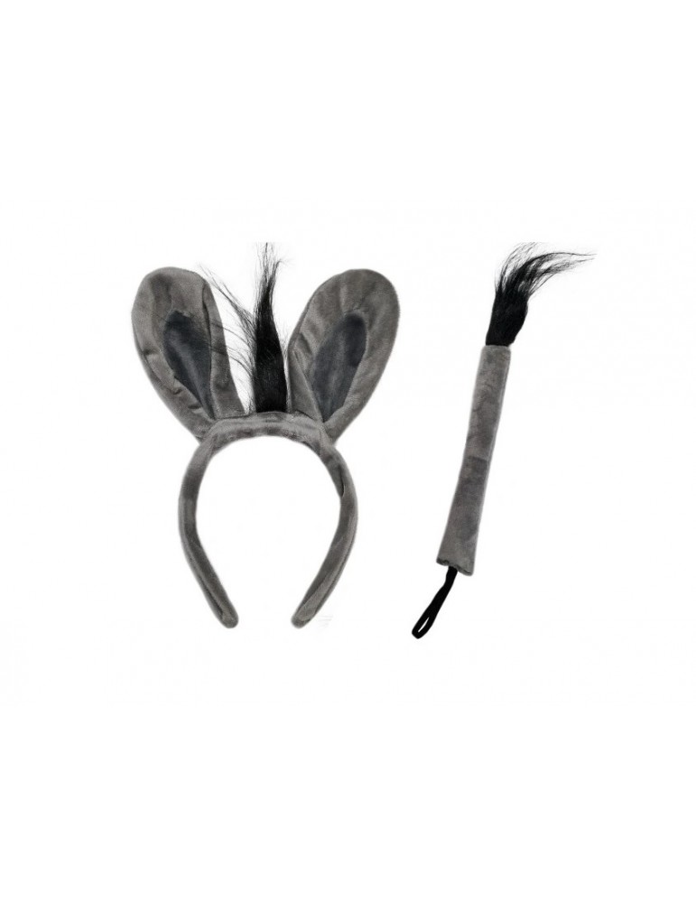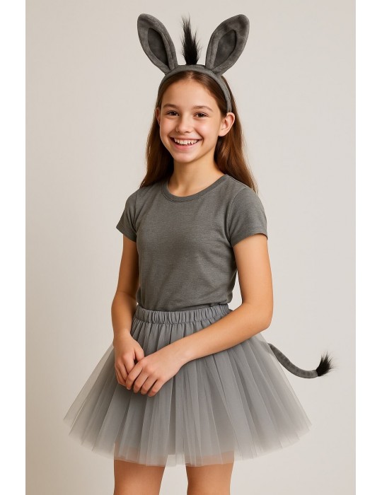 Zestaw Strój Osiołek Osła Shrek Tutu szara 40cm Opaska Ogon 3el MK919