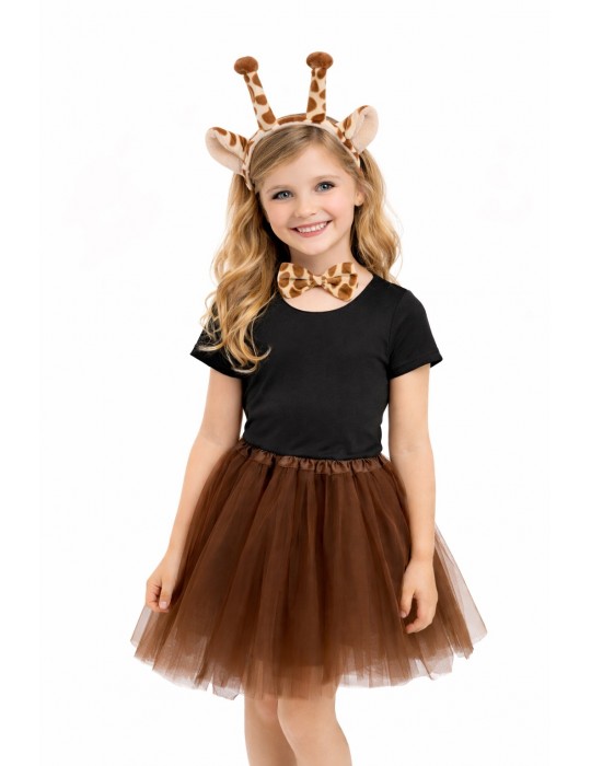 Zestaw Strój Żyrafy TuTu Brązowe 40cm Opaska Ogon Mucha 4el MK928