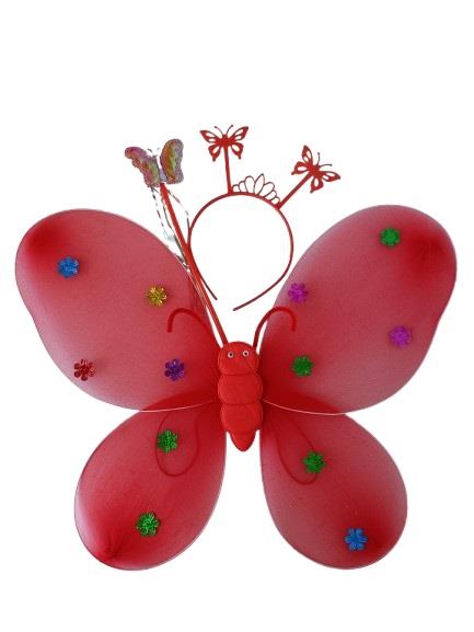 Zestaw Motylek Czerwony Opaska 12055C Różdżka Skrzydła motyla 49x37cm